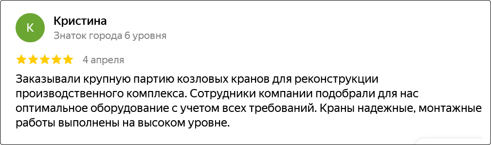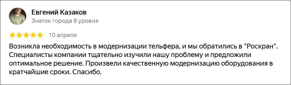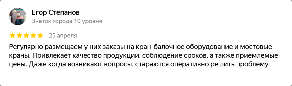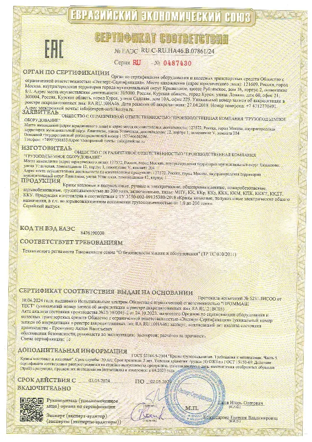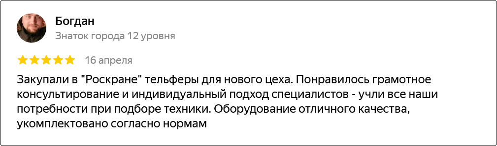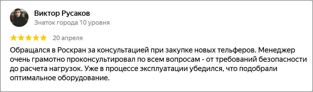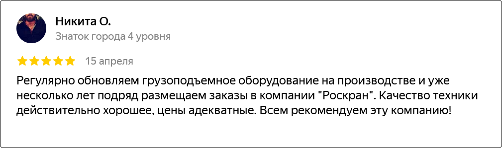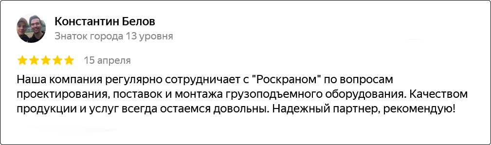 Компания основана в 2012 году и уже более 10 лет успешно работает на рынке грузоподъемного оборудования. За это время мы накопили богатый опыт и заслужили доверие клиентов.