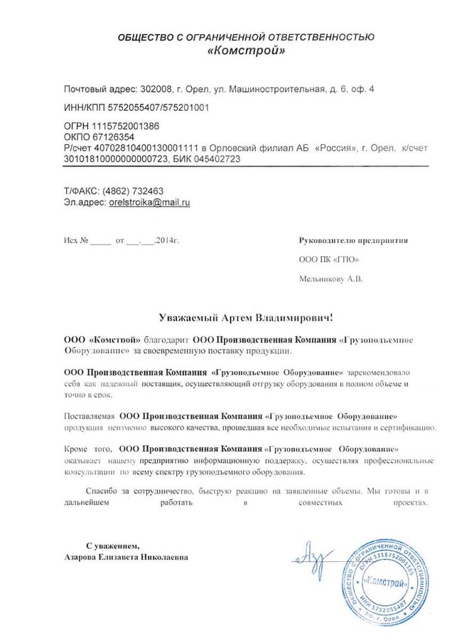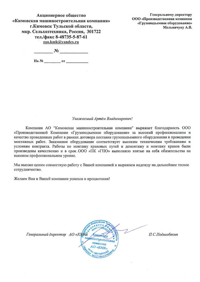 Пришлем КП в день обращения